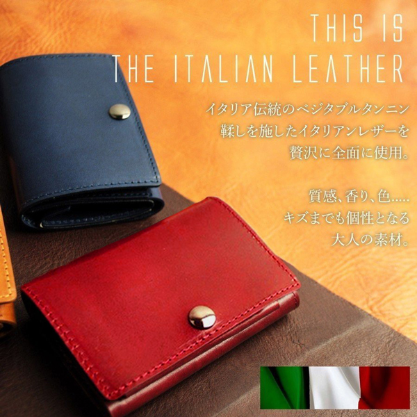 本革 三つ折り財布 イタリアンレザー 薄型 メンズ レディース 財布 コンパクト ミニサイズ 薄い カード入れ付き 父の日【送料無料】 母の日 プレゼント ギフト