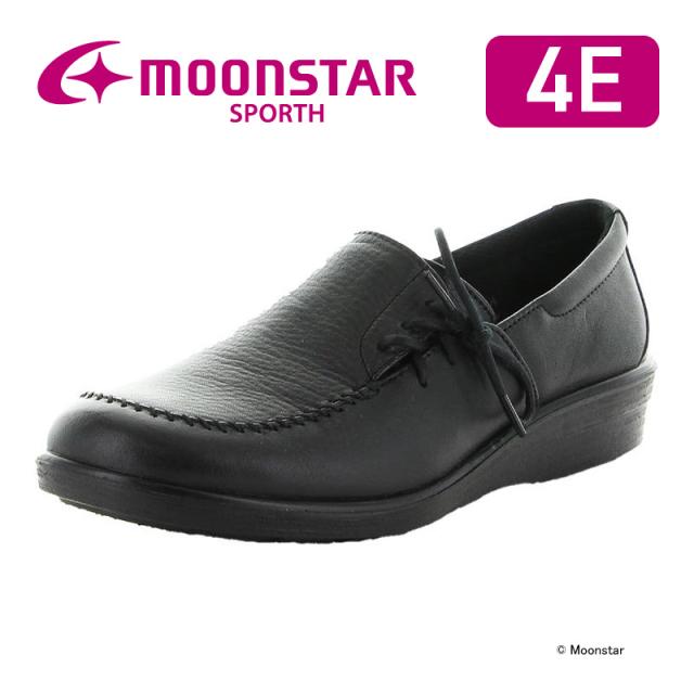 送料無料 ムーンスター スポルス レディース スニーカー カジュアルコンフォートシューズ 靴 SP5631 ブラック 黒 日本製 ソフトクッション 衝撃吸収 撥水 天然皮革 スリッポン 国産 幅広4E 母の日
