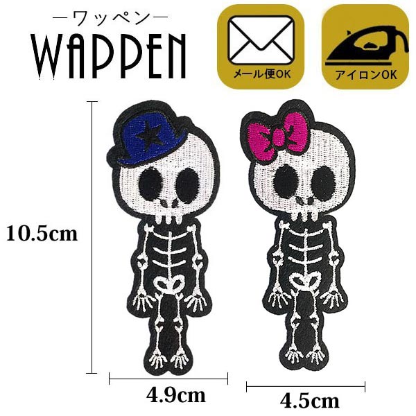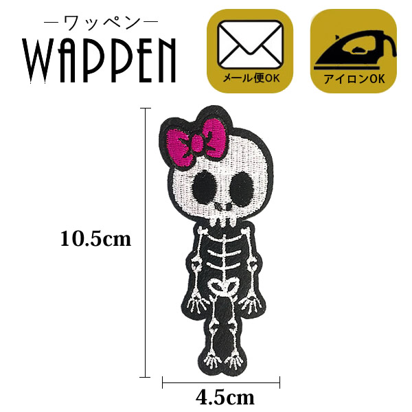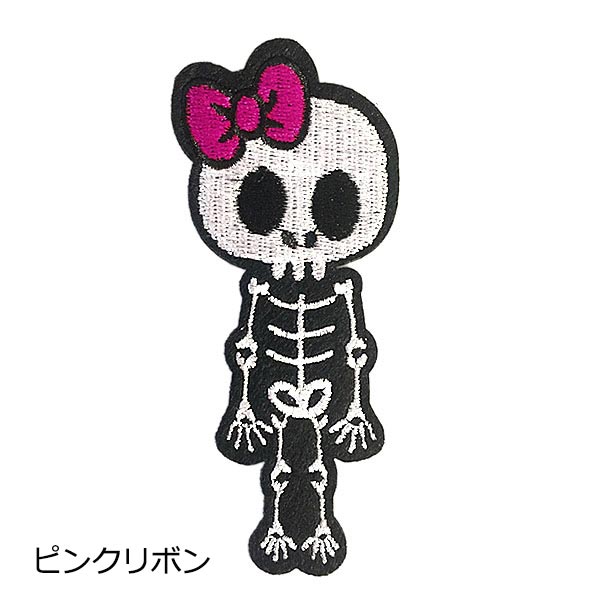 ワッペン 刺繍 アイロン接着 ガイコツ スカル 帽子 リボン アイロンワッペン アップリケ 手芸 ワッペンデコ カスタム 母の日 プレゼント ギフト