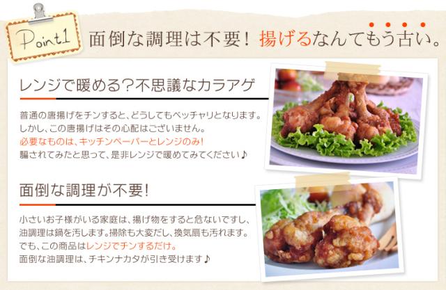鶏肉(和歌山県産)、片栗粉、醤油、生姜、酒、ガーリック塩胡椒、食用なたね油 / 調味料(アミノ酸等) ※(原材料の一部に小麦、大豆を含む)