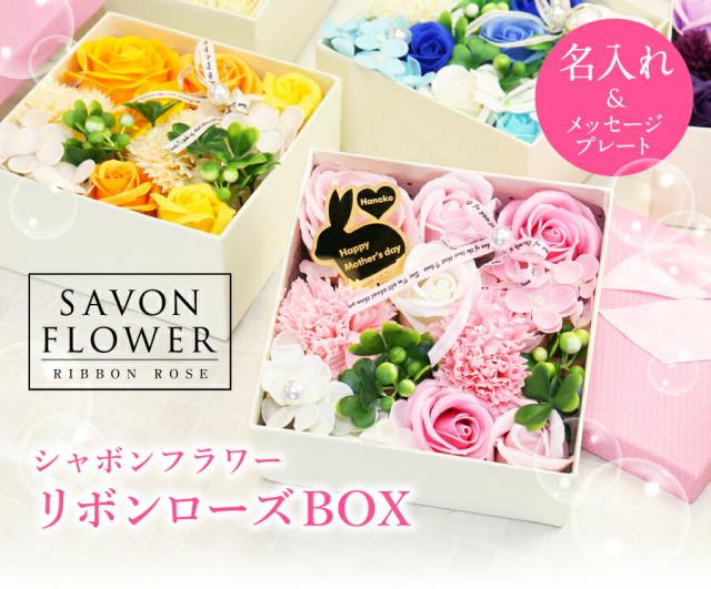 ソープフラワー ギフト 女性 シャボンフラワー リボンローズBOX 翌々営業日出荷 メッセージ バラ 石鹸 かわいい 名入れ ギフト