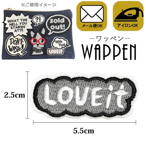 ワッペン 刺繍ワッペン アイロン接着 縦2.5cm×横5.5cm LOVE it 吹き出し フキダシ アップリケ アイロンワッペン 手芸母の日 プレゼント ギフト