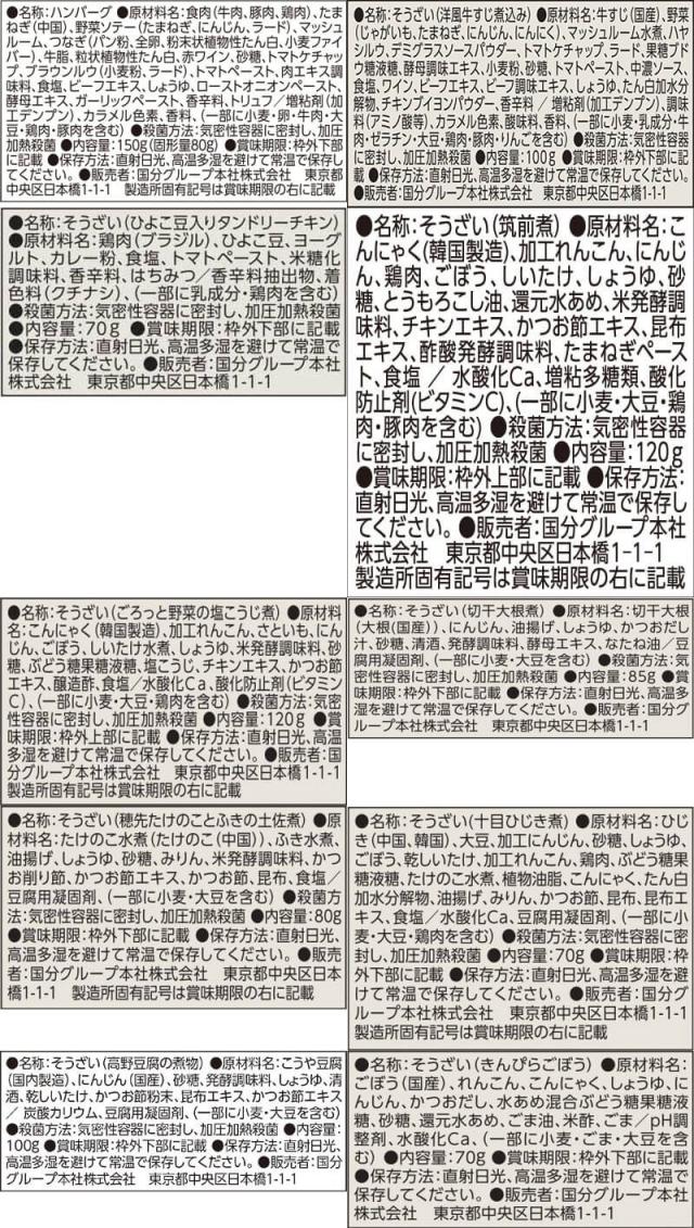 | 内容量 | まごころを食卓に 膳 ■ 製造日より 365日 ハンバーグ デミグラスソース 150g ■ 製造日より 270日 洋風牛すじ煮込み 100g ひよこ豆入りタンドリーチキン 70g ■ 製造日より 241日 高野豆腐の含め煮 100g ■ 製造日より 240日 筑前煮 120g ごろっと野菜の塩こうじ煮 120g 切干大根煮 85g 穂先たけのことふきの土佐煮 80g 十目ひじき煮 70g ■ 製造日より 180日 4種具材のきんぴらごぼう 70g 10種 10食 製造メーカーからの仕入商品の為 賞味期限はお届け時のものではございません。 予めご了承くださいませ。 |