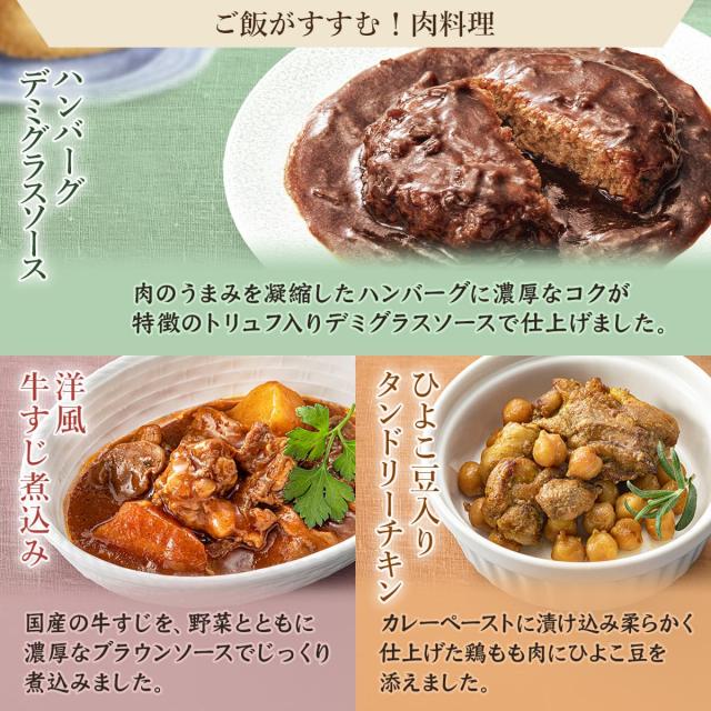 野菜 肉 魚 煮物 おばんざい や 煮魚 ハンバーグ など 和食 洋食 おかず お惣菜 主菜 副菜 とレパートリーが豊富。 レンジ 湯煎 で 簡単 に調理ができます。 毎日の ごはん や お弁当 の おかず 困りません。