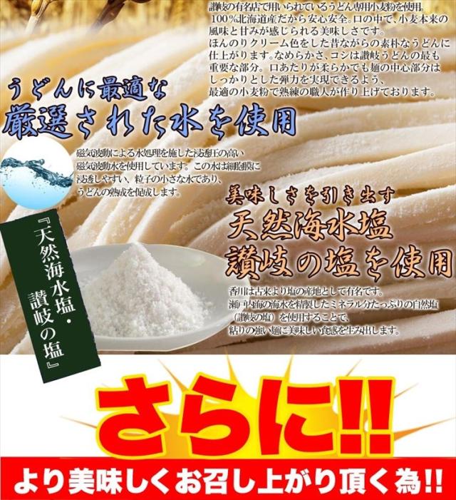 ■遂に登場!!うどん好きの皆様お待たせ致しました!!もっちり麺本場香川が誇る讃岐うどん製麺所直送だからできた!!圧巻の激安価格本場のメチャ旨讃岐うどん■品名:讃岐うどん6食だし醤油付■原材料名:【麺】小麦粉、食塩、清酒、ph調整剤、加工でん粉(打ち粉)【だし醤油】しょうゆ(本醸造)、糖類(ぶどう糖果糖液糖、水あめ、砂糖)、みりん、食塩、さば節、かつお節、たん白加水分解物混合物、こんぶ、調味料(アミノ酸等)、アルコール、(本品は原材料に大豆、小麦粉を含む)■内容量:うどん300g×2、だし醤油10ml×6■賞味期限:約10日〜20日弱賞味期限が残ったものでのお届けとなります■保存方法:直射日光、高温多湿をさけて保存して下さい。