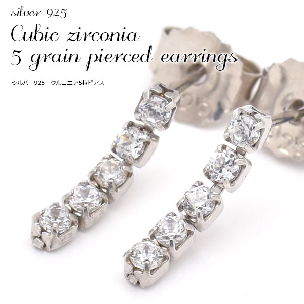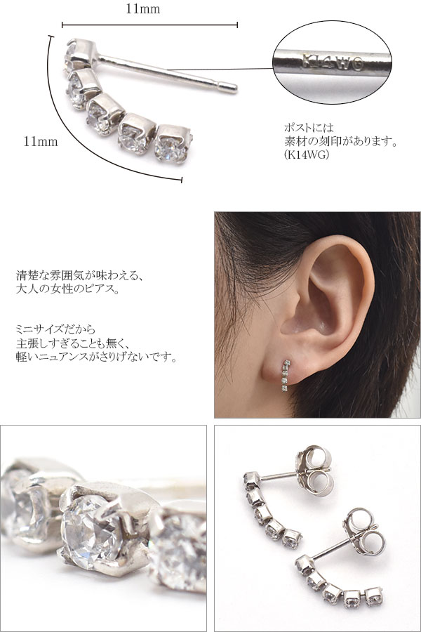 K14WGポスト使用 シルバー925 silver925 キュービックジルコニア 5粒ラインピアス 送料無料