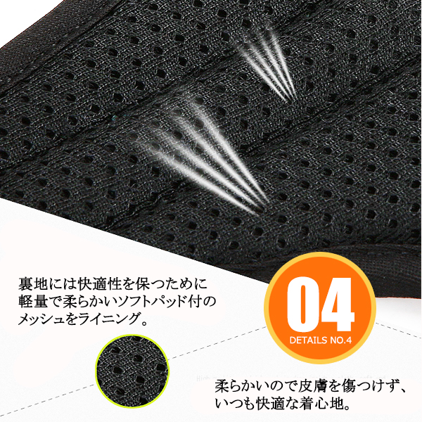 ガッチリ固定しても、裏地がソフトパッドメッシュなので