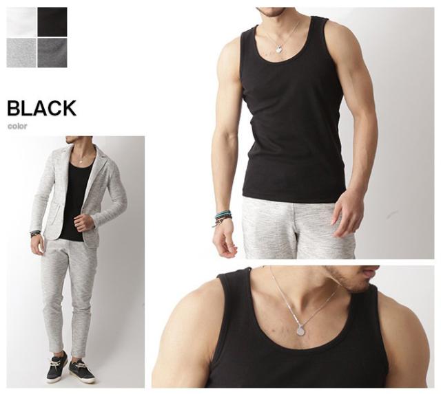 タンクトップ メンズ ノースリーブ メンズ タイトフィット インナー 新作 無地 タンクトップ テレコリブ ベーシック