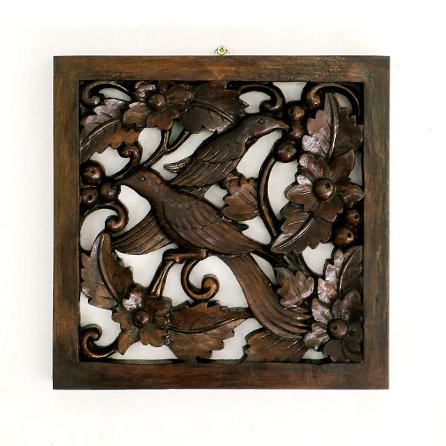 バードモチーフのウッドレリーフ