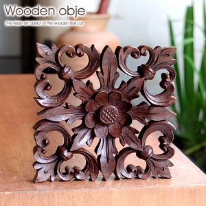 アジアン雑貨 木彫りで出来たフラワーモチーフのレリーフ