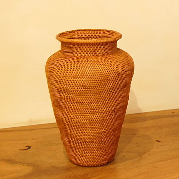 <コメント>バリ島のトゥガナン村に住む職人さんが作ったアタのつぼ。まるで陶器の花瓶のようにやさしい丸みをおびたデザインは熟練の職人だからできる技。水を入れることはできませんがドライフラワー用の花瓶にちょうどいいアイテムです。枯れたような色合いのアタはアジアンテイストだけでなくナチュラルテイストにもよくあう万能アイテム。ドライフラワーを入れずにこのつぼだけでも立派なオブジェになりますよ。■サイズ(cm):約W 20x D 20 x H 29■クオリティ:スタンダードクオリティ■素材:アタ■ご注意:ハンドメイドのためサイズ・形が写真と異なる場合があります。かかります)