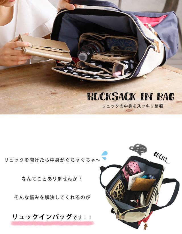 【2個買って1個無料】 バッグインバッグ 大きめ 3L リュックインバッグ 縦型 整理 無地 (ar-RUKU-INRU2) リュック インナーバッグ レディース メンズ ファスナー 仕切り 中身 整理 リュックサック 収納 おしゃれ かわいい