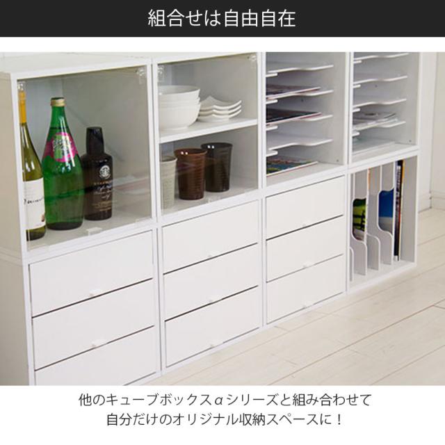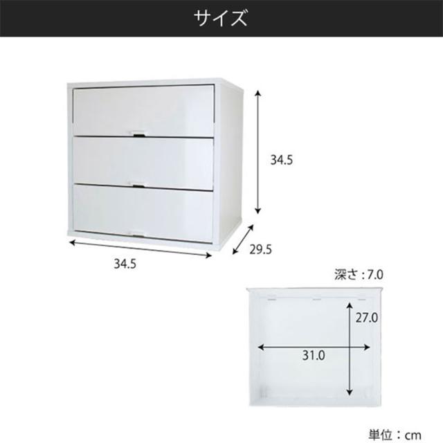 キューブボックスα 3段引き出しタイプ カラーボックス 引き出し 収納 鏡面 スタッキングシェルフ スタッキングボックス 木製 A4 卓上 ミニチェスト 収納ボックス 小引き出しチェスト 小さい
