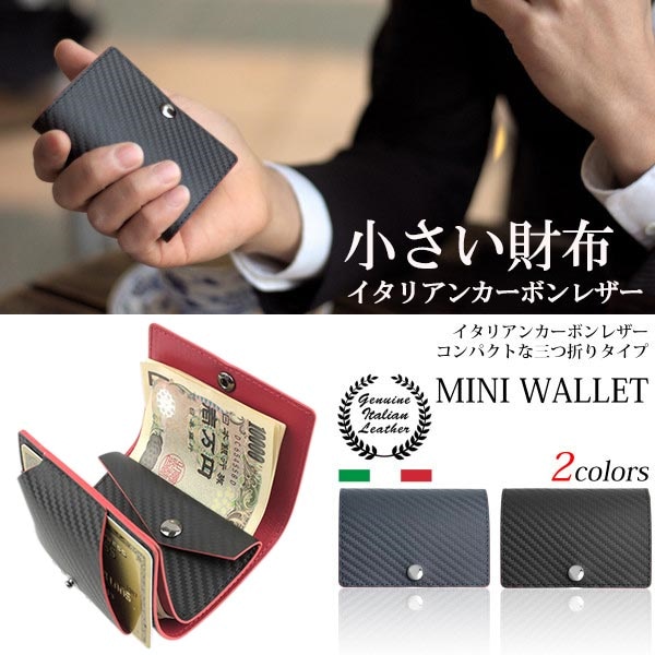 イタリアンカーボンレザー 牛革 三つ折り財布 メンズ 薄型 コンパクト 小さい 財布 小銭入れ カード入れ ケース付【送料無料】父の日 母の日 プレゼント ギフト
