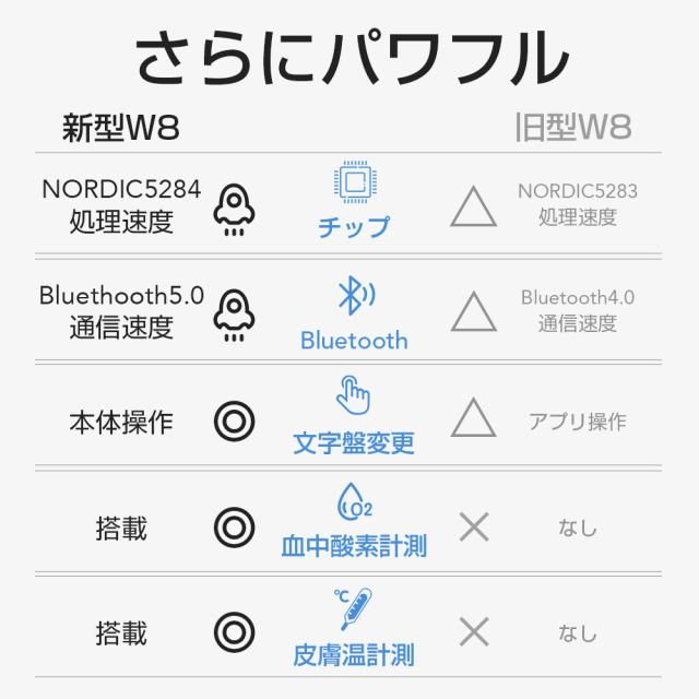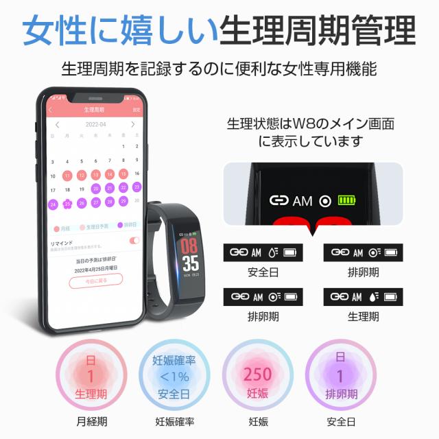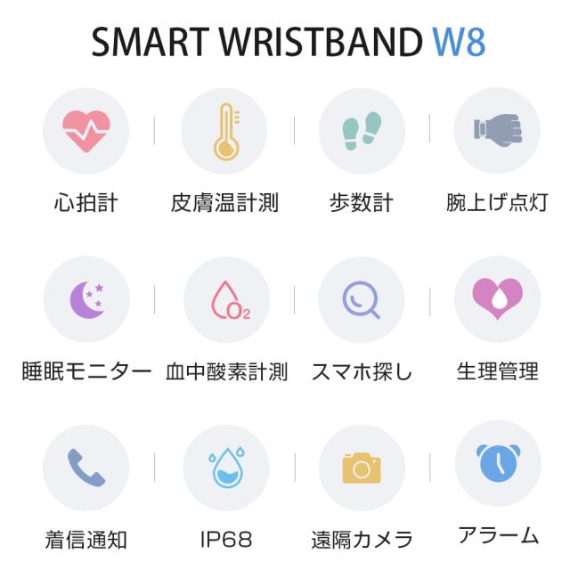 ■W8 スマートウォッチは、手首への快適なフィット感と理想的なデザインを追求した多機能のウェアラブルデバイスであり、手首への簡単な装着によって、日中及び夜間の活動量を科学的に計測することができます。 主には歩数、消費カロリー、移動距離、睡眠の質等、日常生活の様々なシーンにおいての活動量が測定可能です。