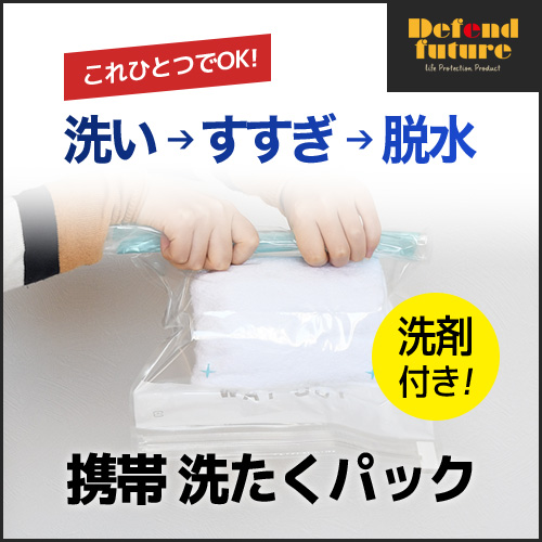 携帯 洗たくパック ポータブル 洗濯 パック 洗い すすぎ 脱水 圧縮 圧縮袋 洗剤 付き Defend Future