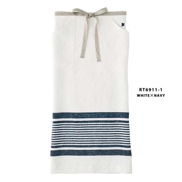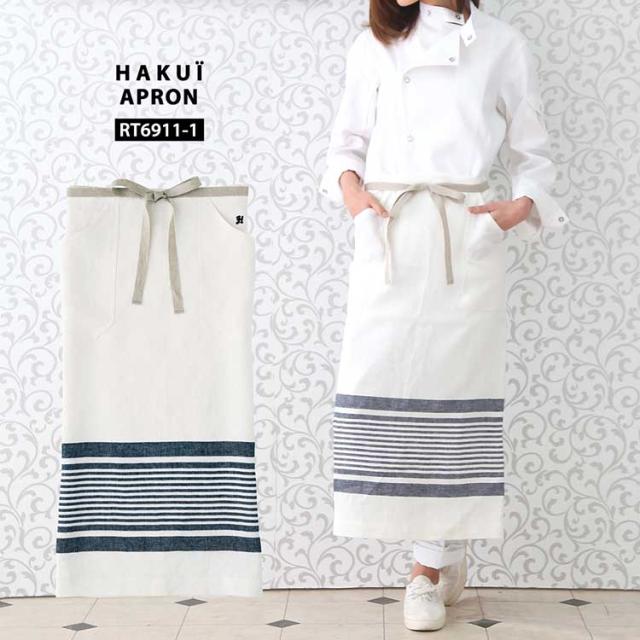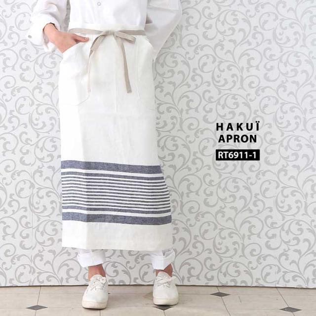 エプロン RT6911 HAKUI セブンユニフォーム メンズ レディース 腰下タイプ 麻100% リネン カフェ 飲食店 厨房 制服 レストラン ユニフォーム