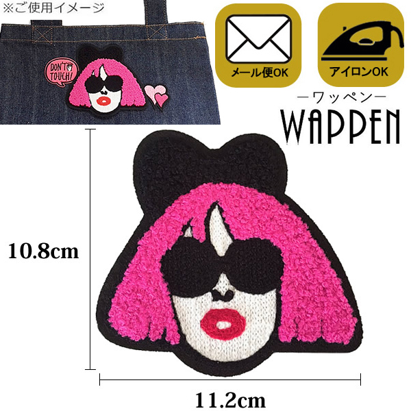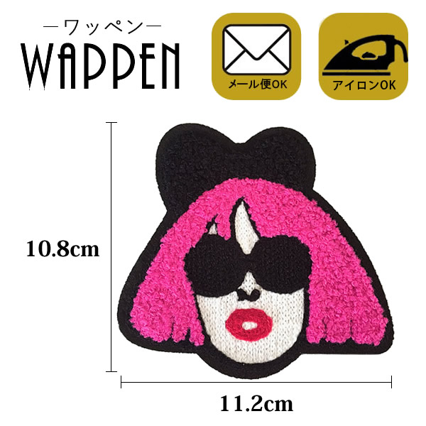 ワッペン 刺繍ワッペン アイロン接着 縦10.8cm×横11.2cm サングラス リボン ガール 女性 アップリケ アイロンワッペン母の日 プレゼント ギフト