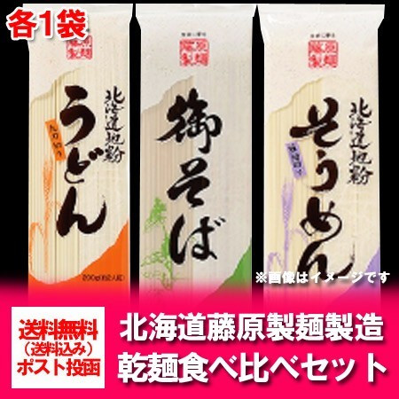 送料無料 乾麺 セット 北海道 藤原製麺 製造 北海道 乾麺セット 食べ比べ うどん / 御そば / そうめん 各1束 セット ポイント消化 送料無料 メール便 食品 ポスト投函 麺類 うどん そば そうめん