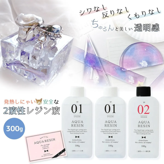 大容量!!【2液性レジン液】300g NEWアクアレジン1:2 GreenOcean 2液性 二液性レジン クリスタルレジン エポキシ樹脂 AQUARESIN クラフト 手芸 テーブル