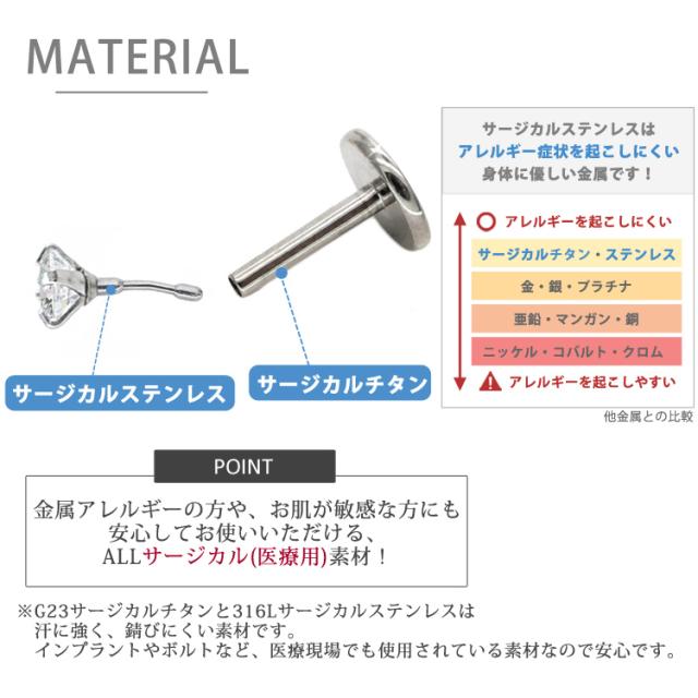 ジルコニアの輝きでは満足できない方、本物志向の方へ送る《ちょっと贅沢なボディピアス》。流行に左右されないデザインはまさに一生モノ。