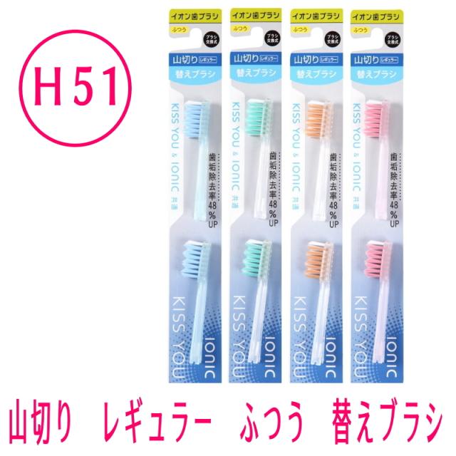 【メール便可】イオン歯ブラシ キスユー 替えブラシ 2本入り 山切りレギュラー ふつう H51 カラー:オレンジ・グリーン・ピンク・ブルー