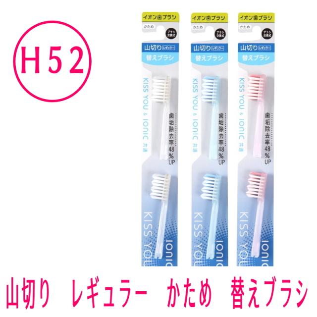 【メール便可】イオン歯ブラシ KISS YOU(キスユー) 替えブラシ 2本入り 山切りレギュラー かため H52 カラークリア・ピンク・ブルー