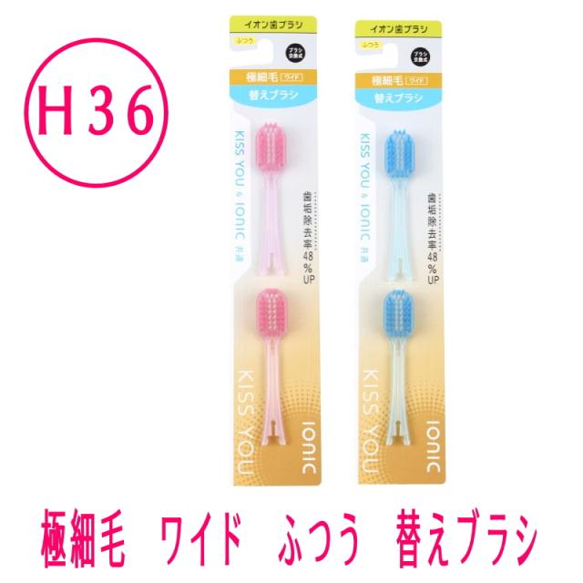 【メール便可】イオン歯ブラシ KISS YOU(キスユー) 極細毛 ワイドヘッド歯ブラシ 替えブラシ2本入り ふつう H36 カラー:ブルー・ピンク