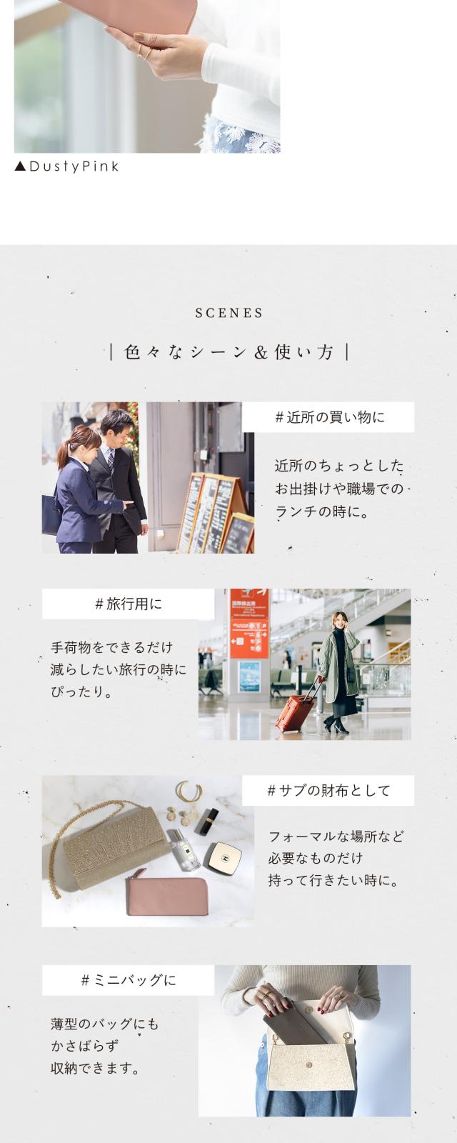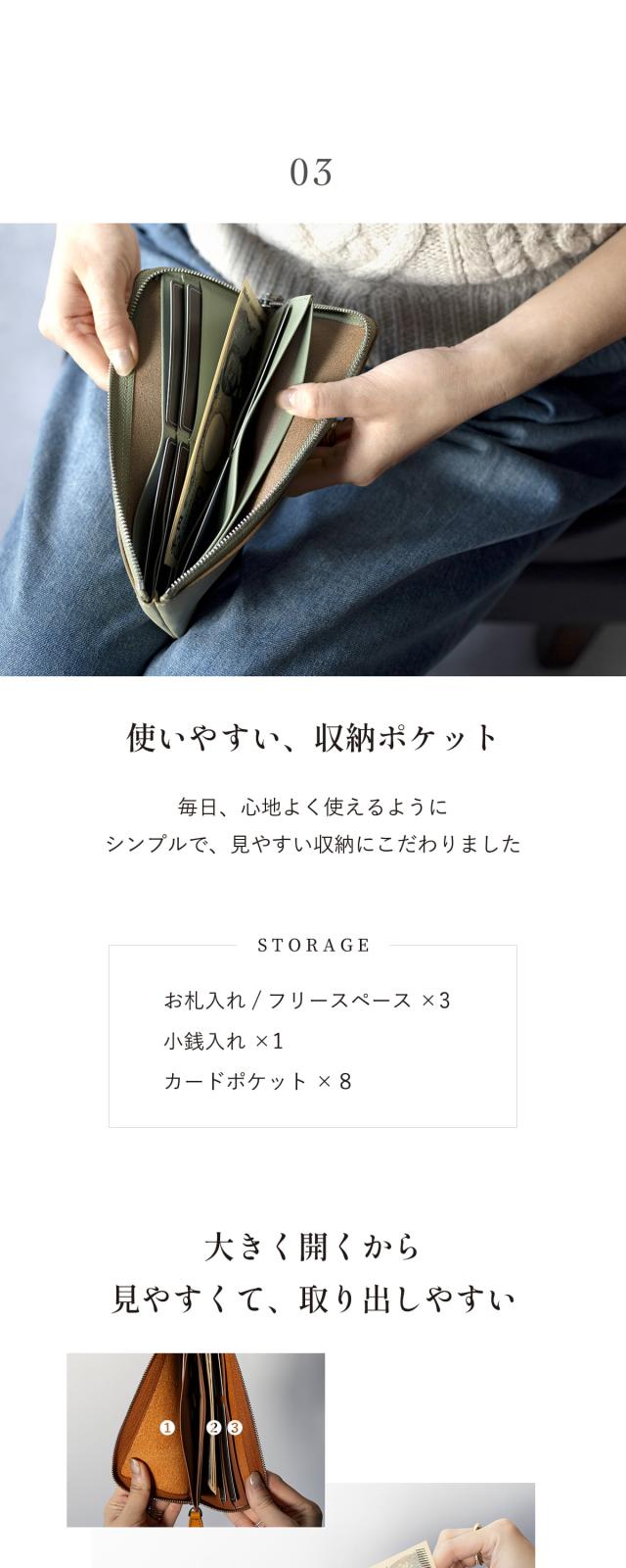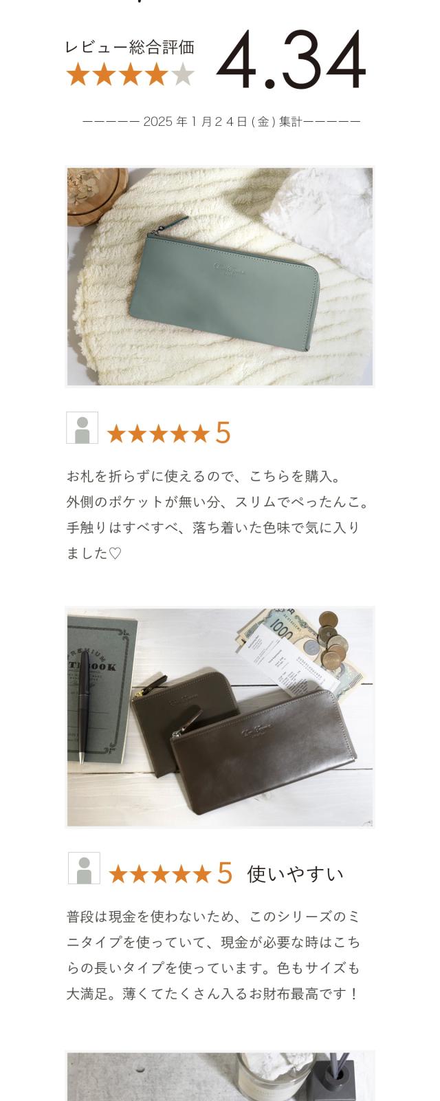 - 手触りが良く気に入ってます。普段の買い物の時に利用するためこちらを選びました。適度にカードも入れることができ使いやすいです。外側にポケットがあったらレシートを入れられて もっと良かったと思います。