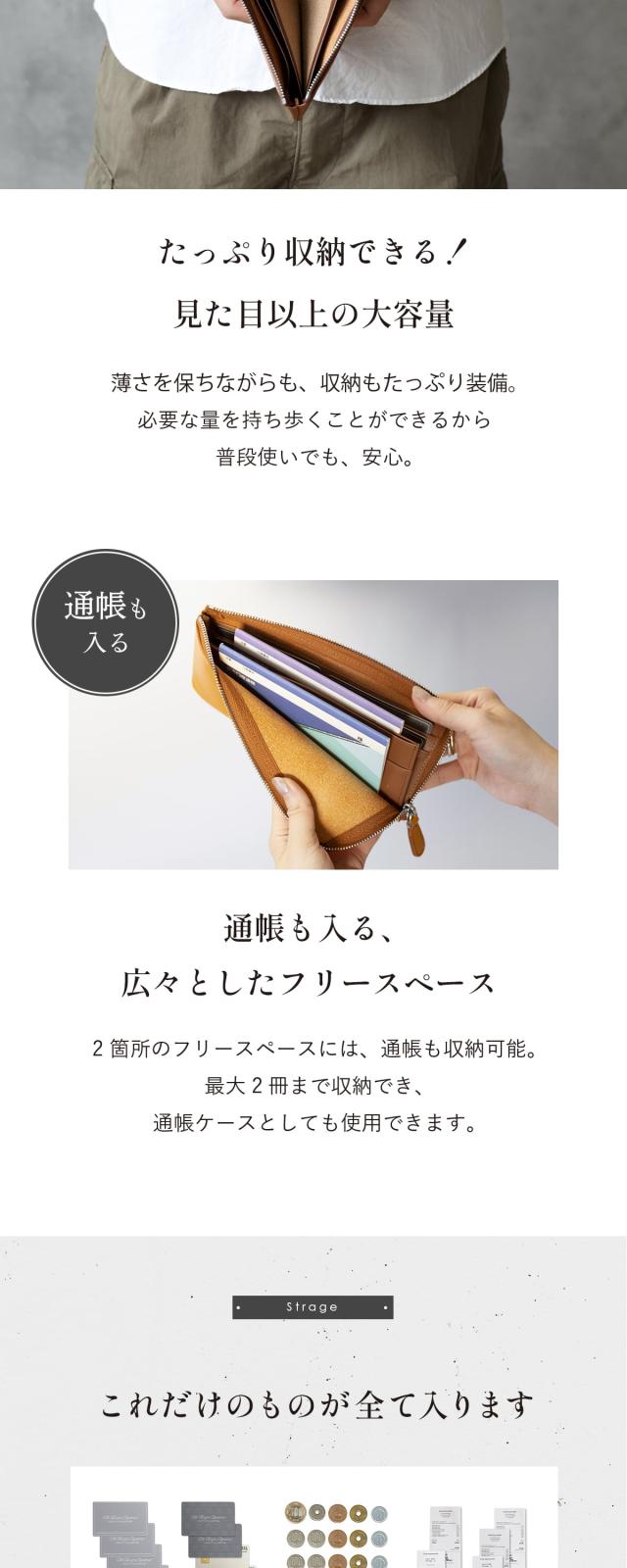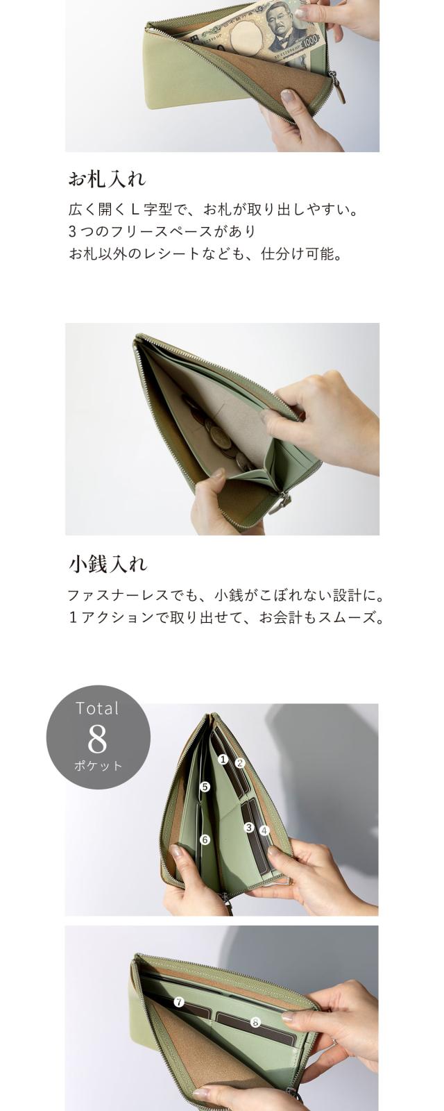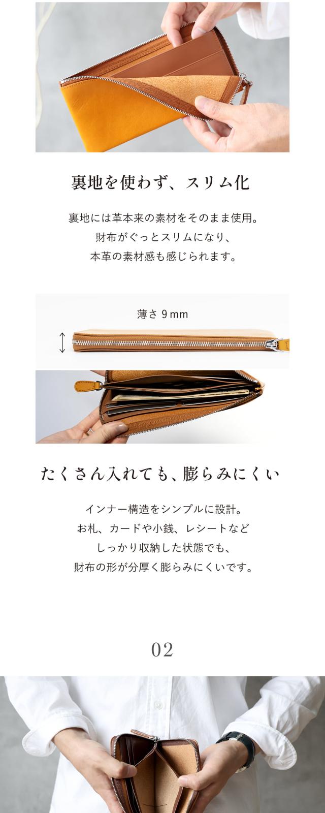 およそ9mmのスマートな薄さが特徴のロングウォレット。