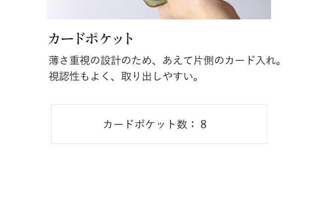 - 発送も早く、想像していたよりもカードも入り満足です。薄くて持ち歩きも良さそうです!グリーンの色みは想像よりもダークグリーンでした