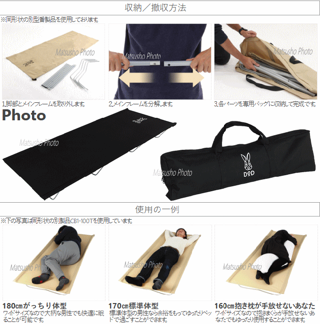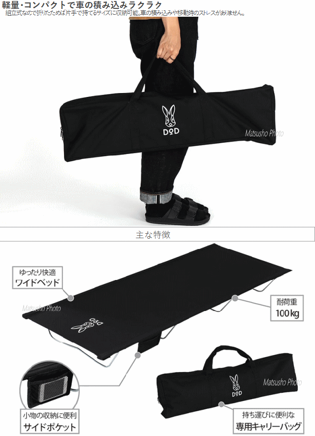 キャンピングベット コット DOD ワイドキャンピングベッド CB1-100-BK ブラック ディーオーディー 送料無料