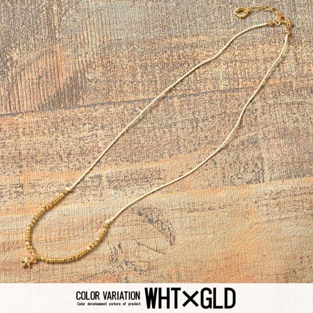 スターチャームとビーズの組み合わせが存在感抜群なコードネックレス。