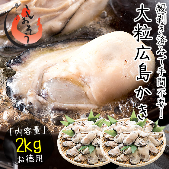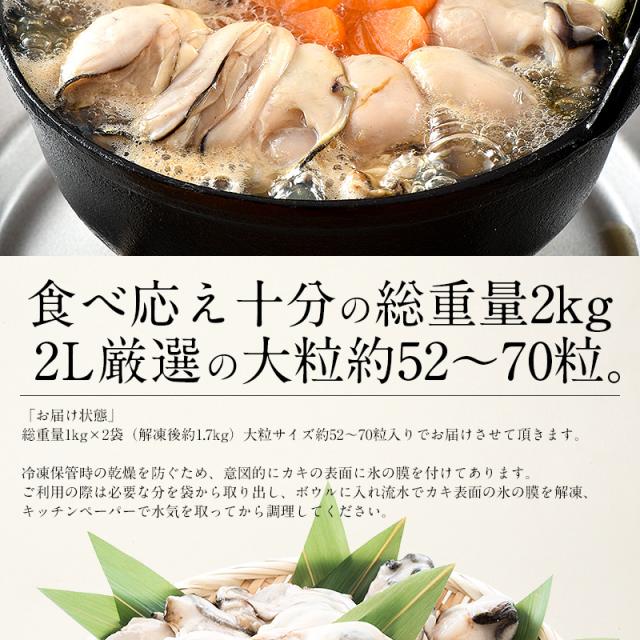 カキ 牡蠣 かき 剥き身 2kg(1kg×2袋/解凍後1.7kg/大粒2L約52〜70粒)広島県産 ギフト プレゼント お歳暮