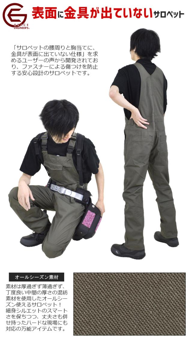 ツナギ サロペット ジャンプスーツ グレースエンジニアーズ GRACE ENGINEERS つなぎ ツヅキ服 作業服 作業着 オールシーズン メンズ レディース GE-157