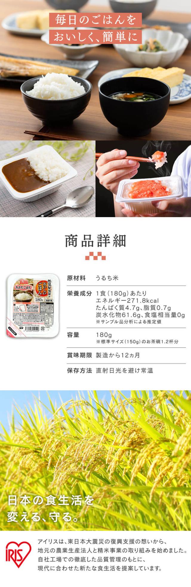 パックご飯 180g 6食パック あきたこまち アイリスオーヤマ 米 パック レトルト 秋田県産 パックごはん レトルトご飯 ご飯パック ごはんパック インスタントアイリスフーズ 保存 備蓄 非常食 防災
