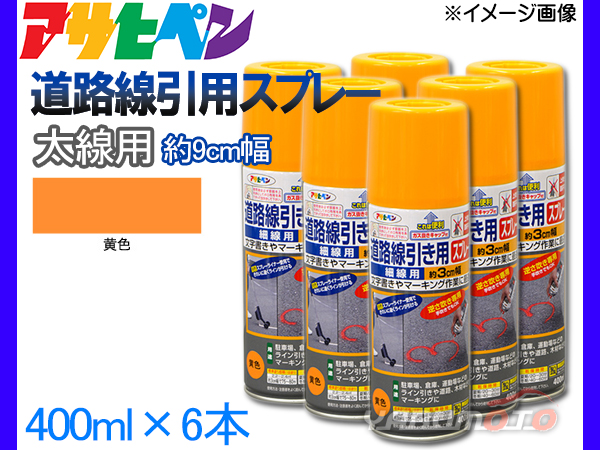 アサヒペン 道路線引き用スプレー 400ml 6本セット 黄 太線用 約9cm ツヤ消し 不透明 屋内 屋外 塗装 塗料 DIY 駐車場 倉庫 マーキング