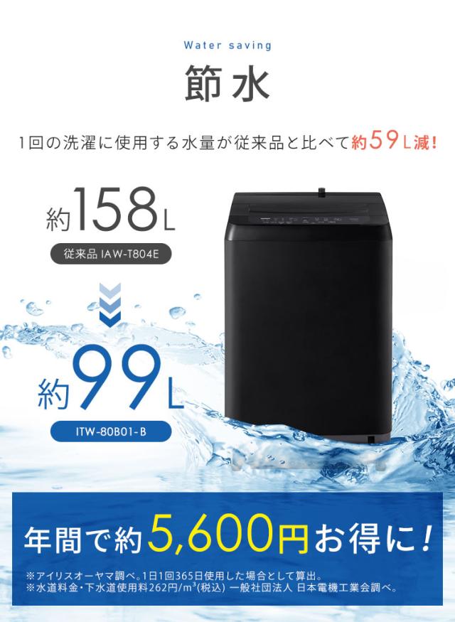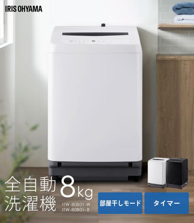 洗濯機 8キロ 8kg 縦型 一人暮らし 家族向け アイリスオーヤマ 全自動洗濯機 縦型洗濯機 ガチ落ち大水流洗浄 節水 節電 ホワイト 折りたたみ式ふた 送料無料 ITW-80B01