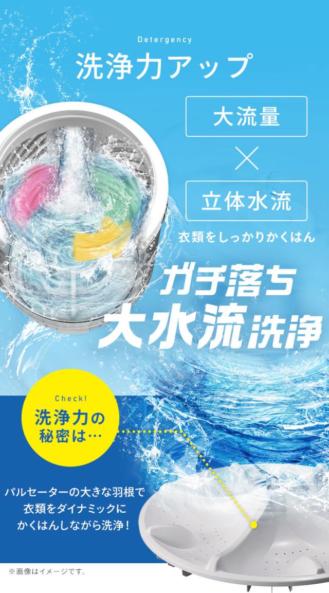 パルセーターの大きな羽根で衣類をしっかりかくはん。