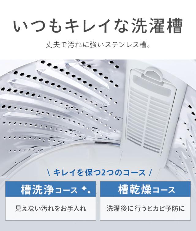 槽乾燥:洗濯機内部の湿気を取り、かびの発生を抑える