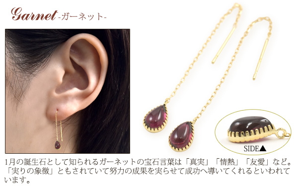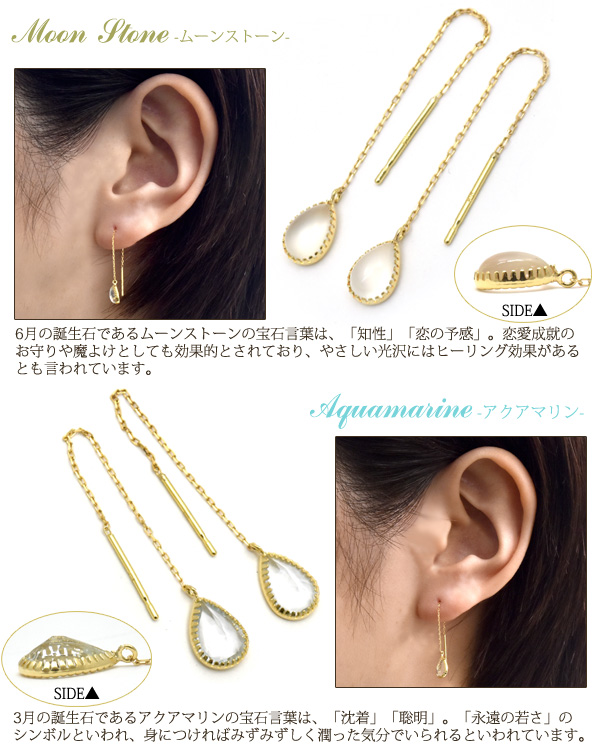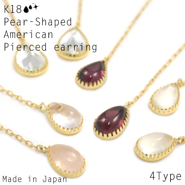 ピアス 日本製 K18 天然石 ペアシェイプ アメリカンピアス 1月 ガーネット 3月 アクアマリン 6月 ムーンストーン 10月 ローズクォーツ プレゼント 誕生石 イベント パーティー 華やか かわいい きれい 上品 女性 自分へのご褒美 クリスマス 送料無料