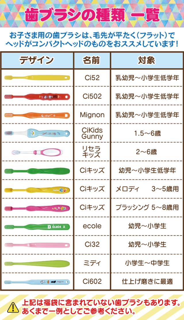 - どれも歯医者さんの歯ブラシで安心だし、選ぶ楽しみがあります。