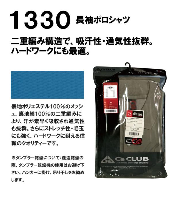 長袖ポロシャツ 1330 ストレッチ 速乾 通気性 ハニカムメッシュ Cs CLUB 作業服 作業着 中国産業