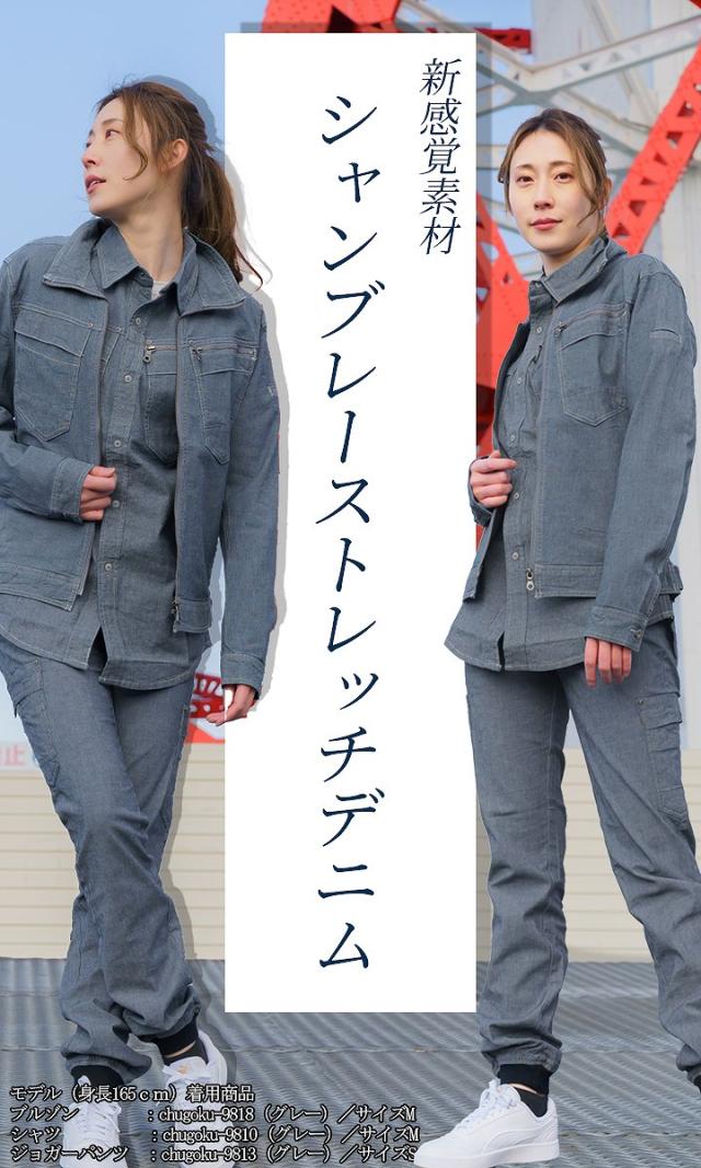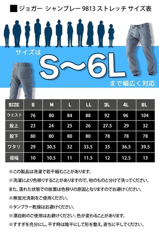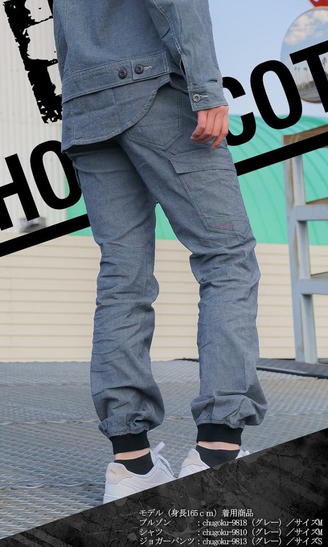 【即日発送】ジョガーパンツ 9813 ストレッチ 軽量 デニム シャンブレー デニシャンストレッチジョガーパンツ HOP-SCOT 作業服 中国産業 9815シリーズ