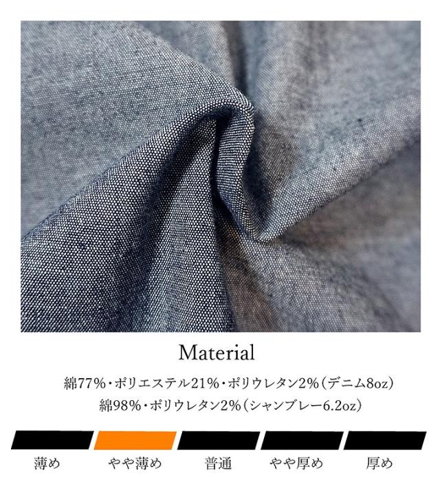 material:綿77%・ポリエステル21%・ポリウレタン2%(デニム8oz)