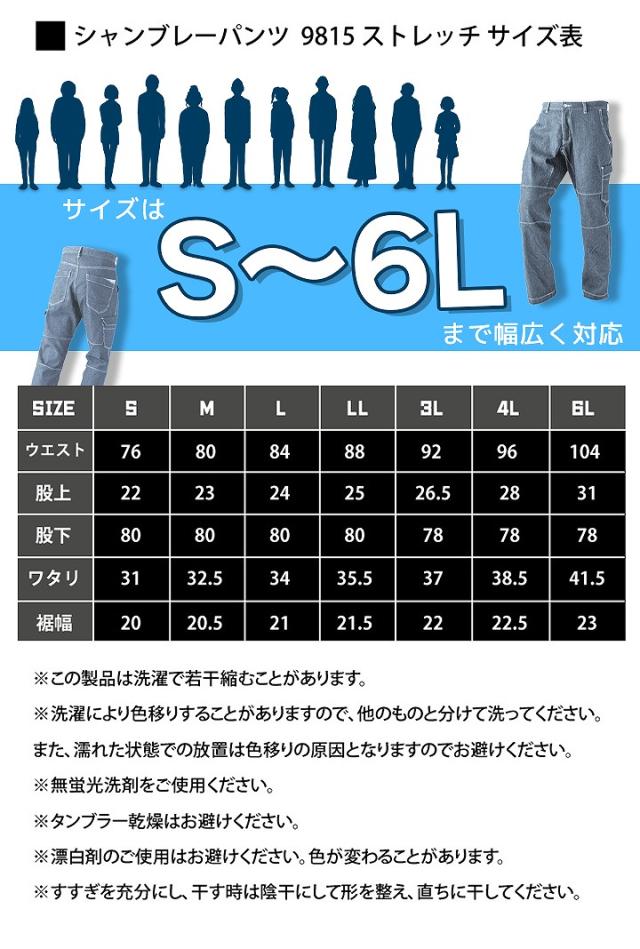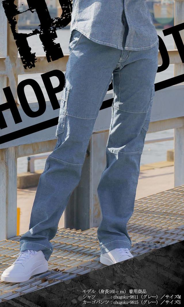 【即日発送】カーゴパンツ 9815 ストレッチ 軽量 シャンブレー デニシャンストレッチカーゴパンツ HOP-SCOT 作業服 中国産業 9815シリーズ