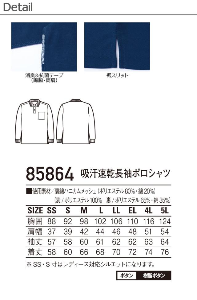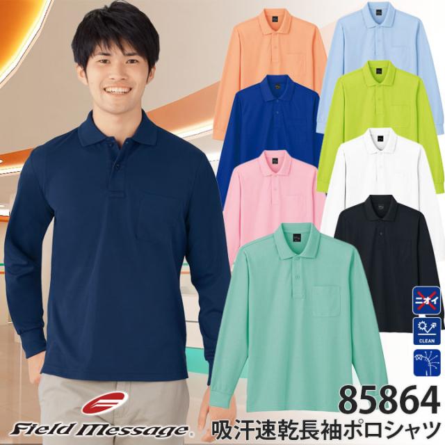 長袖ポロシャツ 85864 消臭抗菌 吸汗速乾 ポケット付き 介護服 作業服 作業着 Field Message 自重堂