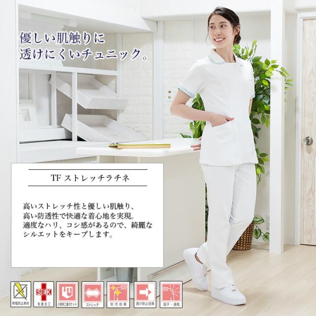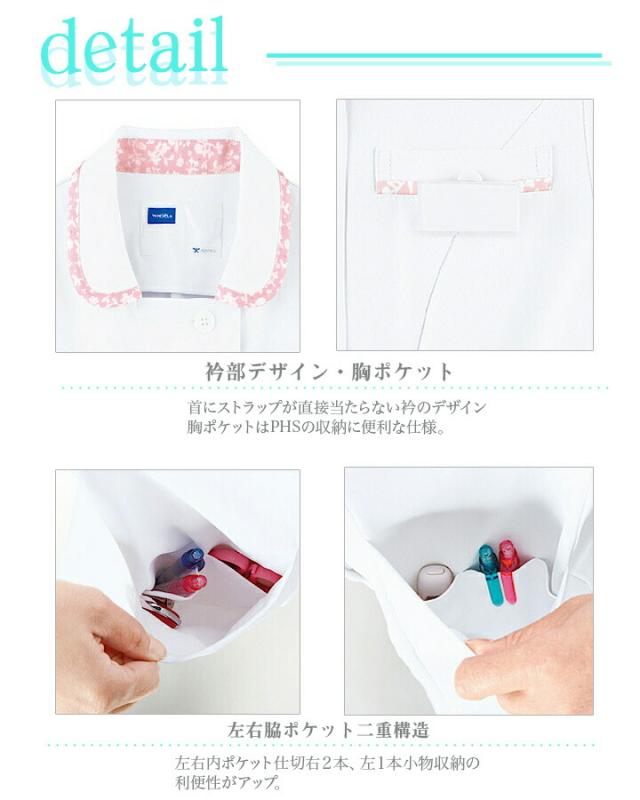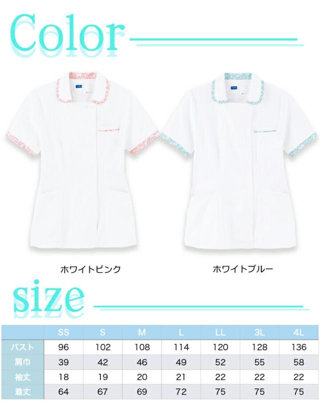 チュニック 白衣 ホワイセル ナース服 wh12101 半袖 花柄 ストレッチ 吸汗速乾 制菌 透け防止 女性 レディース 自重堂 メディカルウェア 医師 医療用白衣