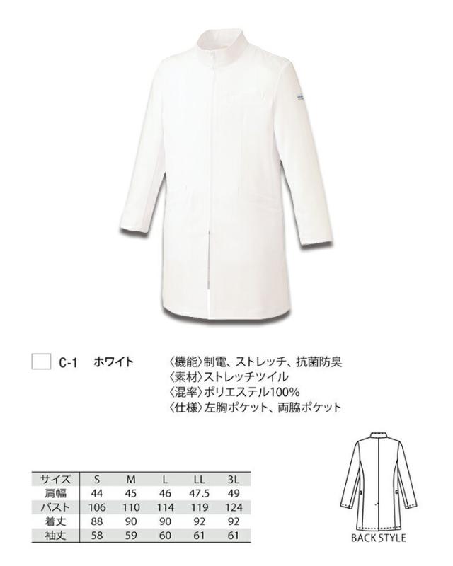 ドクターコート 白衣 メンズコート MK-0013 メンズ 医師 医療用 ドクター 制菌 ストレッチ 静電 男性用 チトセ