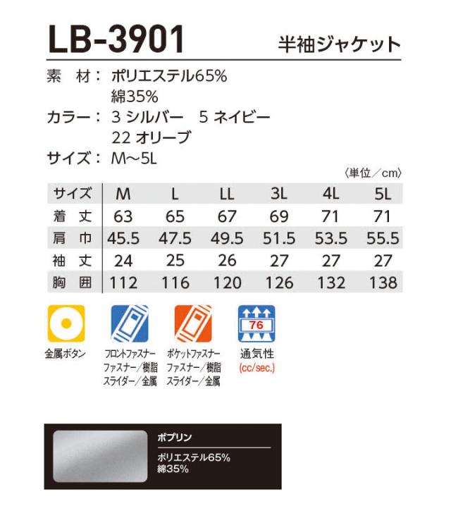 半袖ジャケット LB-3901 タカヤ商事 耐久性 通気性 ジャンバー ブルゾン 作業服 作業着